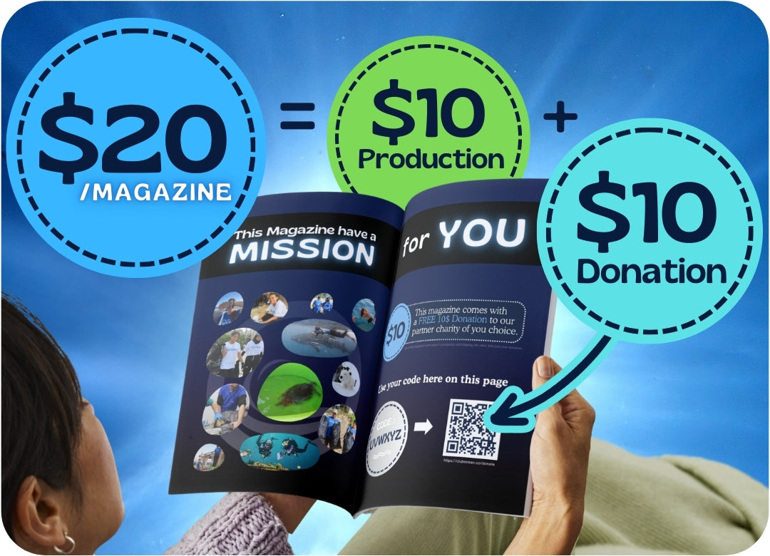 Each magazine contains a secret code that you can use to make a free $10 donation to the partner association of your choice.