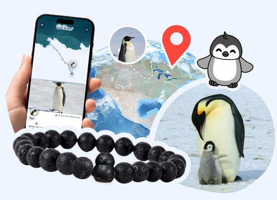 Each bracelet gives you access to geolocation tracking of your penguin in the ice floe thanks to the interactive map included📍
