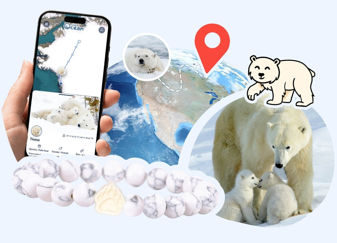Each bracelet gives you access to geolocation tracking of your polar bear one the ice floe thanks to the interactive map included📍